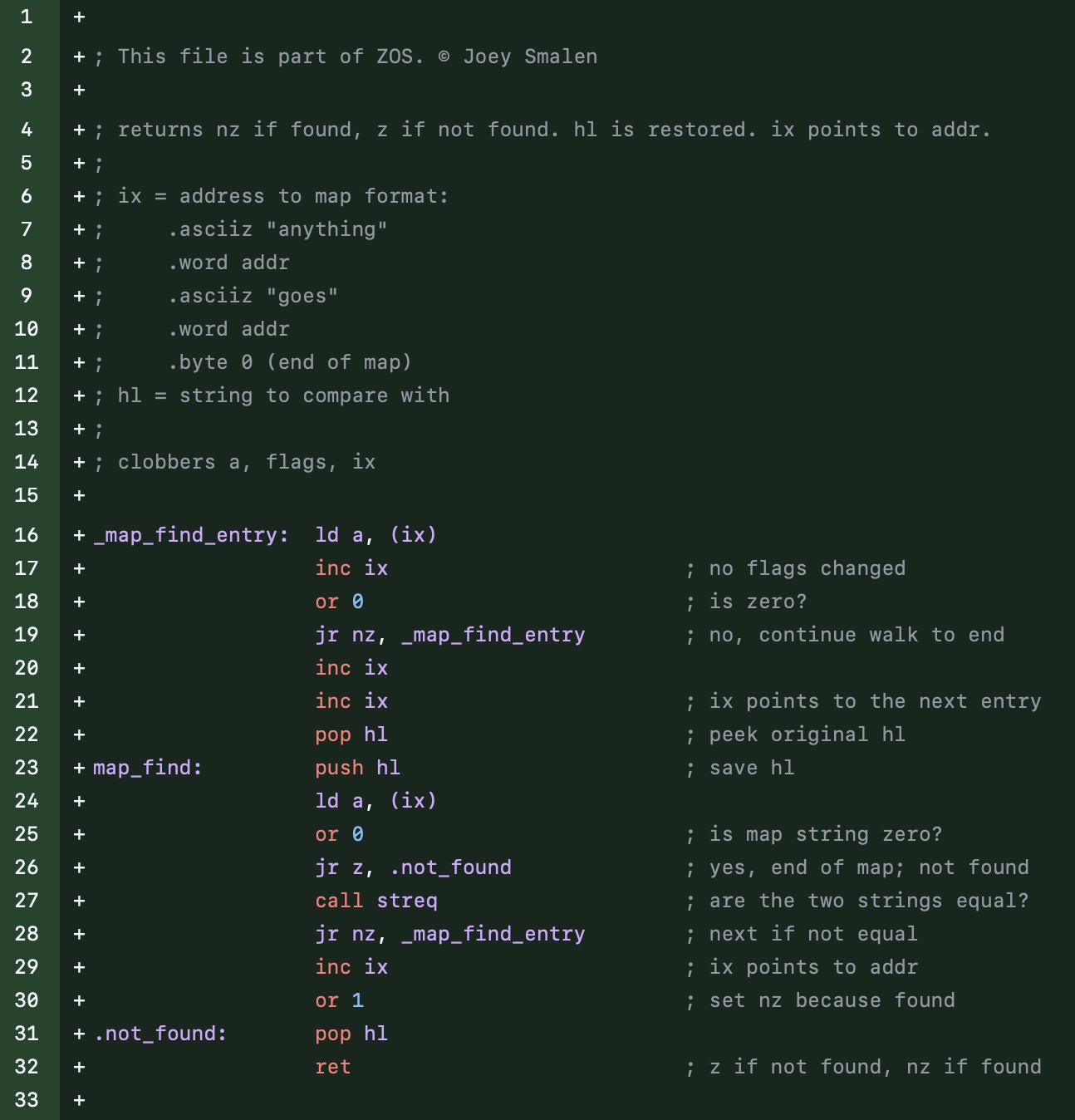 A funny example of 'scary assembly' that I recently wrote was in this commit in ZOS. The ZOS project is an operating system for the Z80. It's just the microprocessor, some input/output, wiring, and myself.